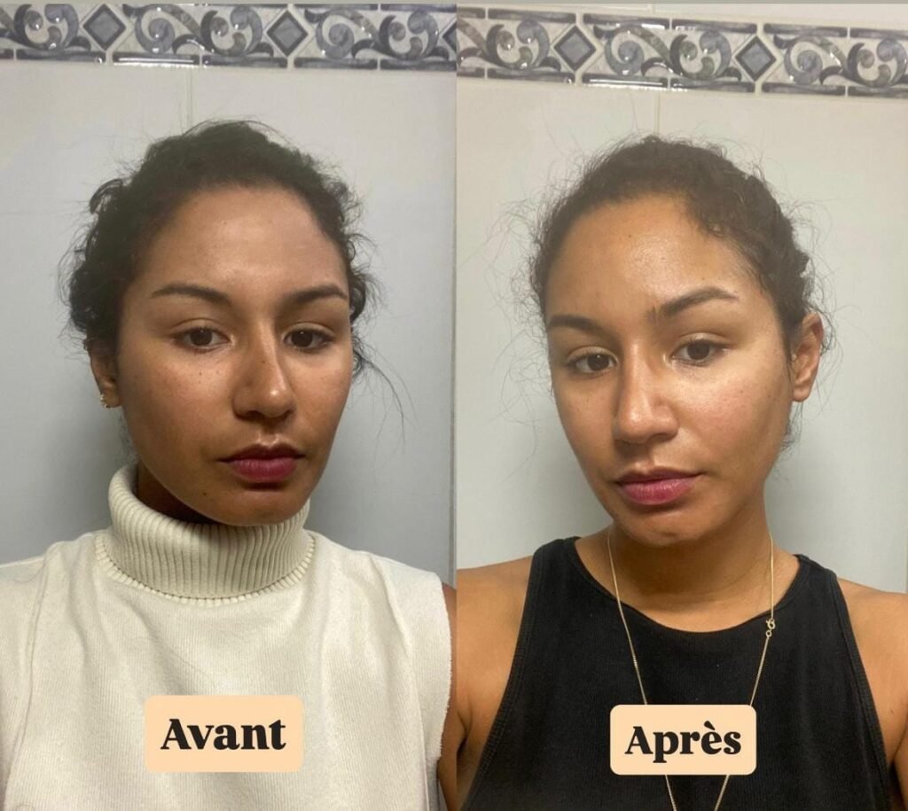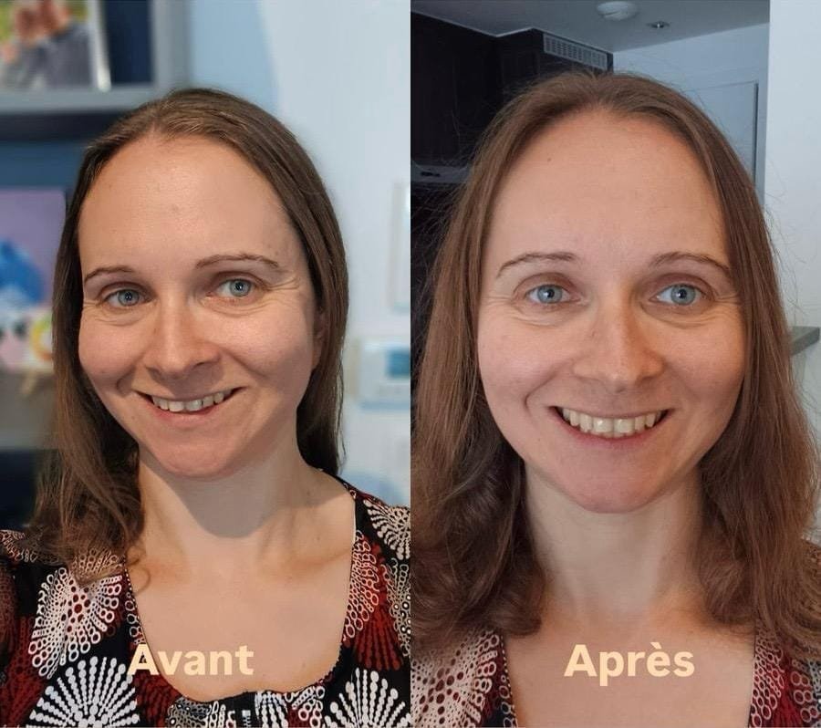 Dès les premières semaines, tu sentiras ton visage plus détendu, ton teint plus lumineux et tes traits plus harmonieux. Avec la régularité, les effets deviennent visibles : ovale redessiné, regard plus ouvert, plis atténuées et peau plus tonique.